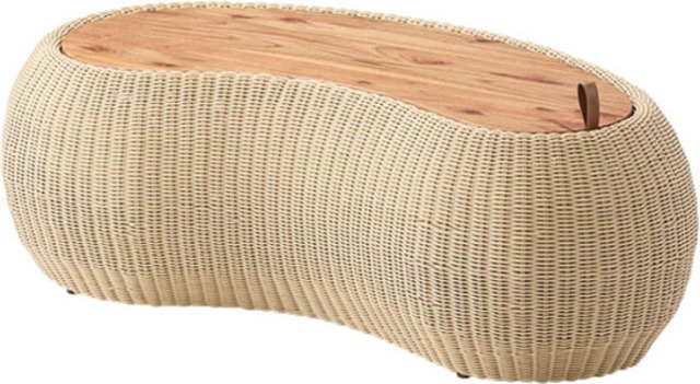 リビングテーブル センターテーブル テーブル 机 木製 天然木 収納 ビーンズ型 豆型 ラタン 北欧 かわいい おしゃれ 屋外 リビング ダイニング