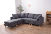 ソファ ソファー 3人掛け 3人以上 カウチソファ ダブルカウチ 北欧 オットマン付き クッション付き 脚取り外し ロータイプ使用可 おしゃれ ベージュ グレー