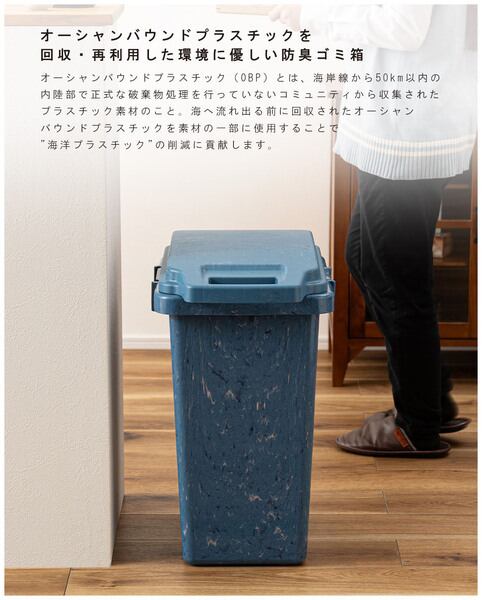 ●オーシャンバウンドプラスチックを回収・再利用した環境に優しい防臭ゴミ箱。