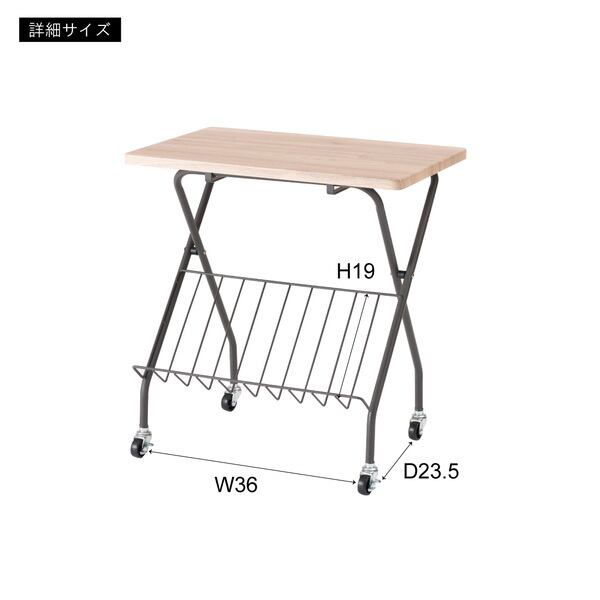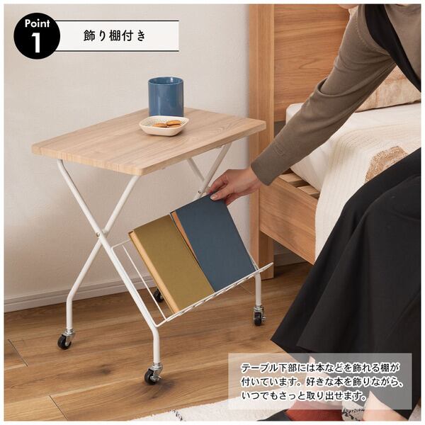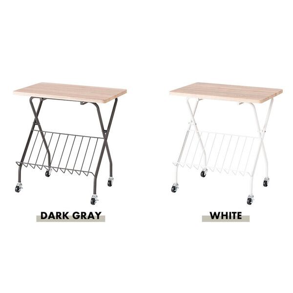 フォールディングサイドテーブル 折りたたみ式テーブル テーブル フォールディング キャスター付き 収納 飾り棚 移動 転がる おしゃれ 木目調 スチール 高さ47cm キッチン 作業デスク シンプル ホワイト 白