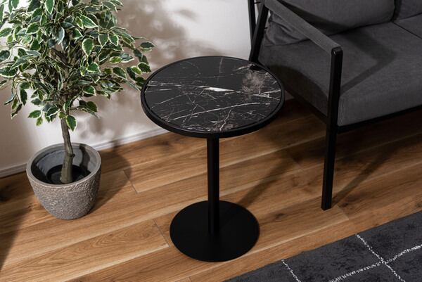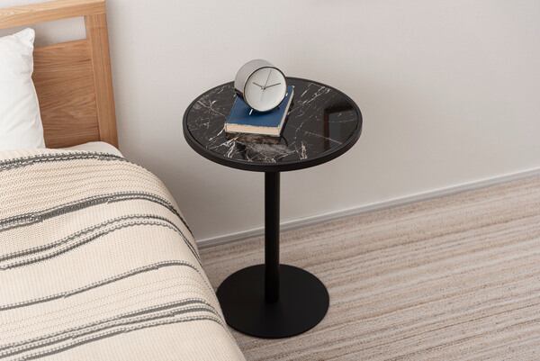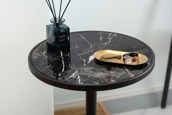 サイドテーブル テーブル 机 ナイトテーブル コーヒーテーブル ソファテーブル ソファサイド ベッドサイド ベッドサイドテーブル 石目調 おしゃれ モダン すっきり ディスプレイ 一本脚 スリム シンプル アクセント 上品 丸 円 ラウンド サークル リビング 寝室 玄関 ブラック