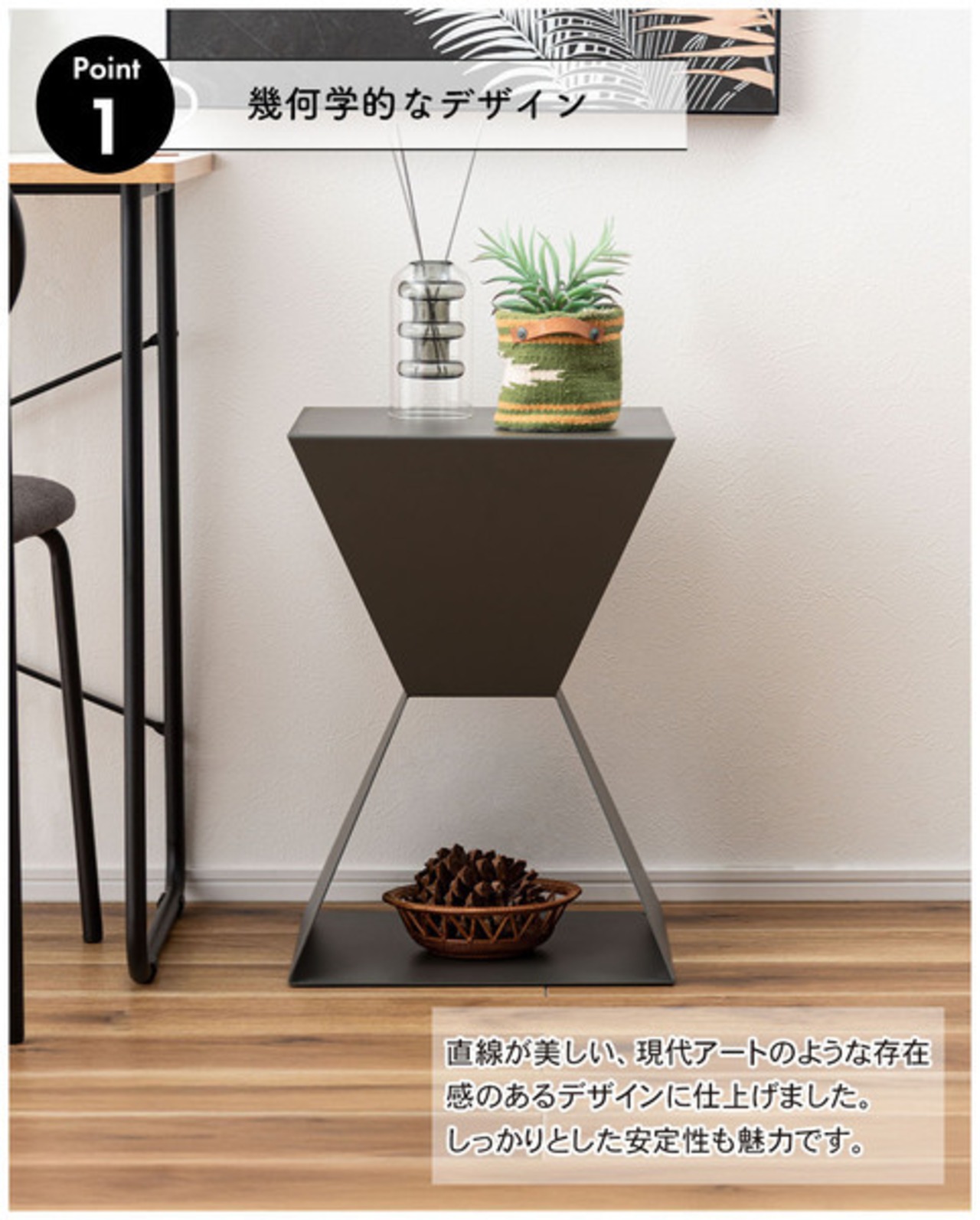 ●マットな質感と直線的な形状が目を引くサイドテーブル。