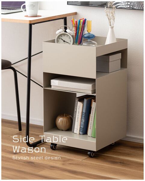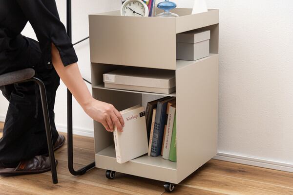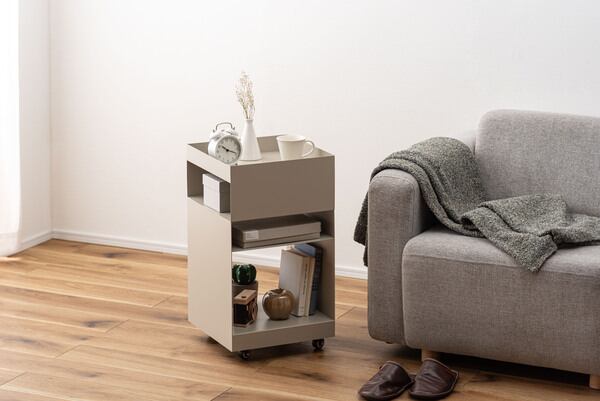 ●マットな質感と収納力が魅力的なサイドテーブルワゴン。