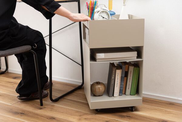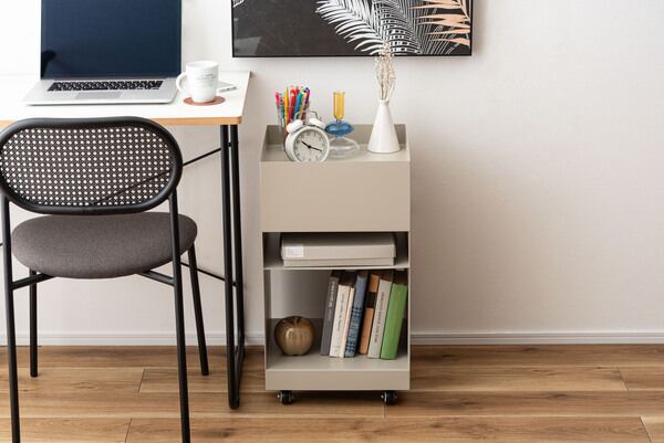 ●収納力が高く移動もできるので、サイドテーブルとしてだけでなくデスクサイドやキッチンワゴンとしても活躍。