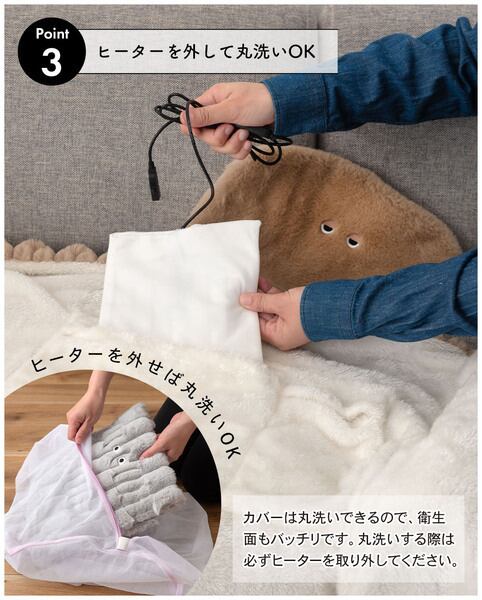 ●ヒーターは取り出しが可能で、カバーを丸洗いすることができます。