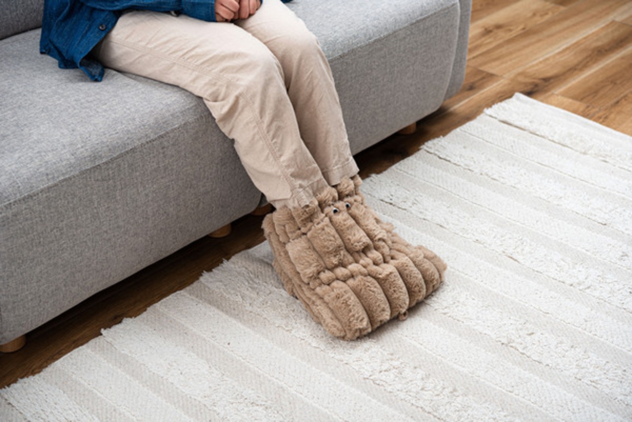 ●触り心地の良いポコポコと模様の入ったファブリックを使用したUSBフットウォーマー。