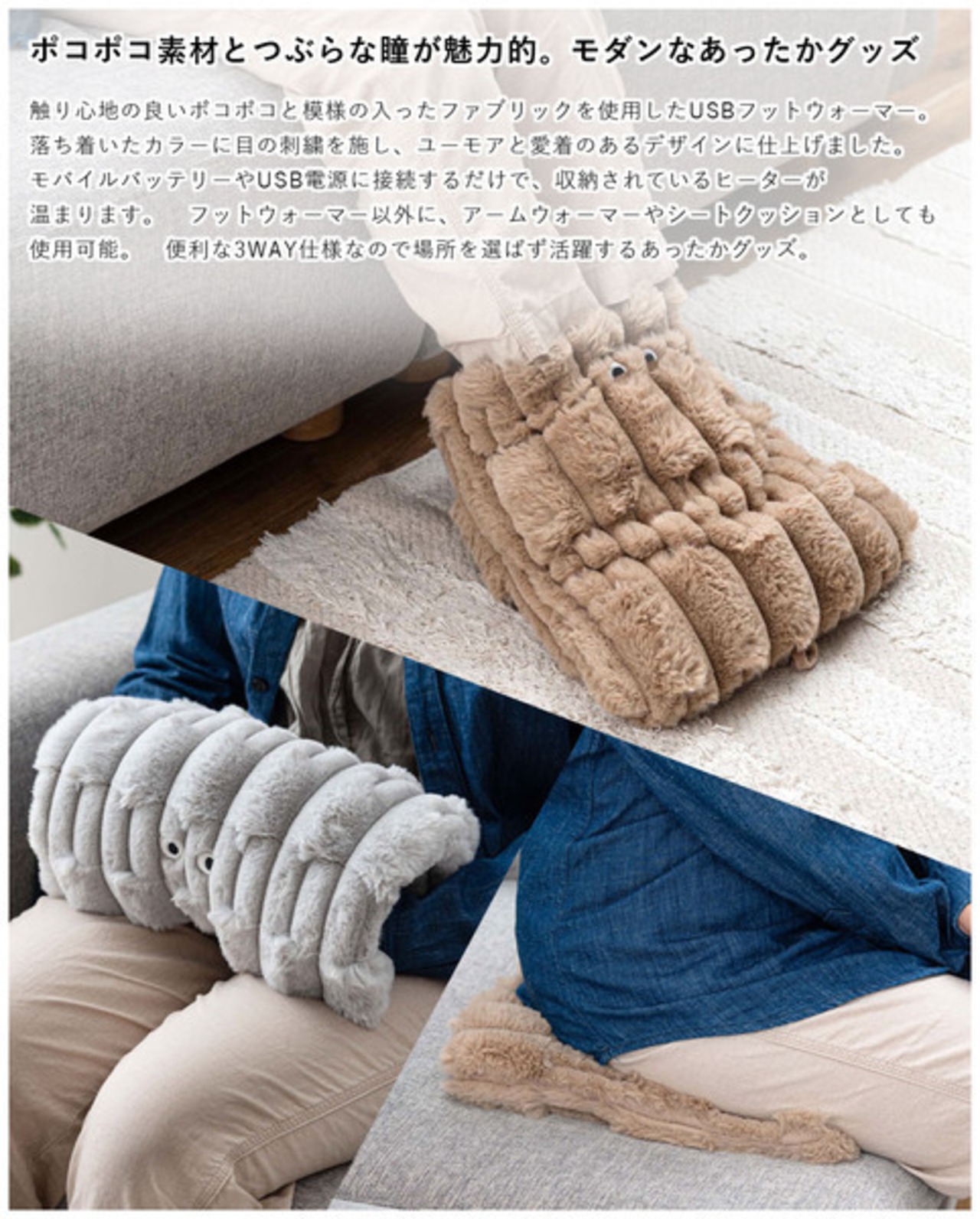 USBフットウォーマー あったかグッズ 冷え性対策 ポコポコ コンパクト かわいい おめめ 目 個性的 ヒーター クッション 収納 洗濯 シートクッション クッション アームウォーマー GLK-221
