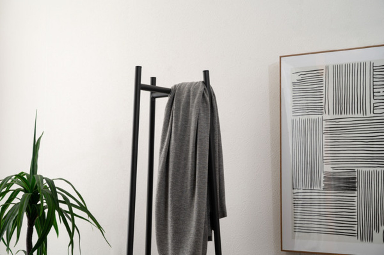 ●3本のスチール脚で支えるミニマルな構造が特徴のハンガー。