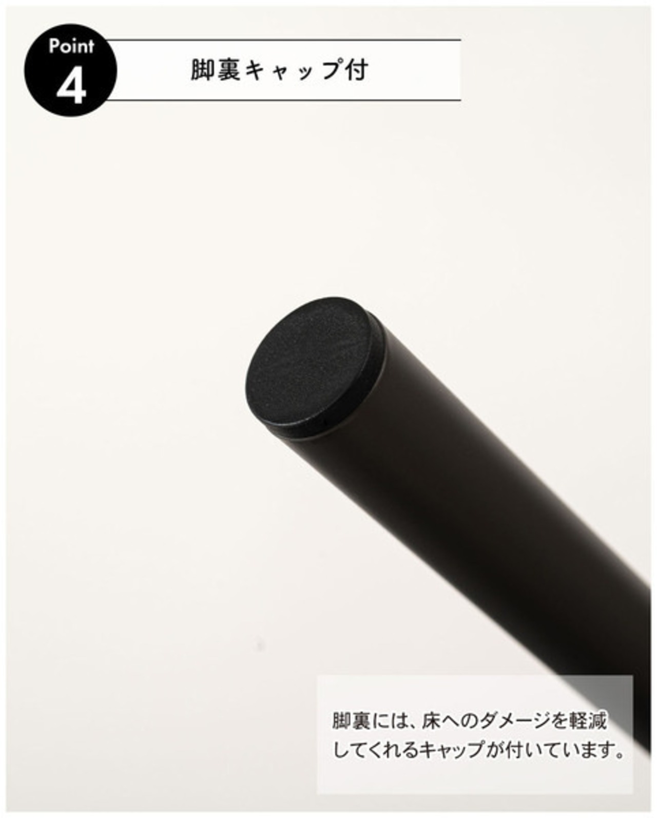 ●脚裏には床へのダメージを軽減してくれるキャップ付き。