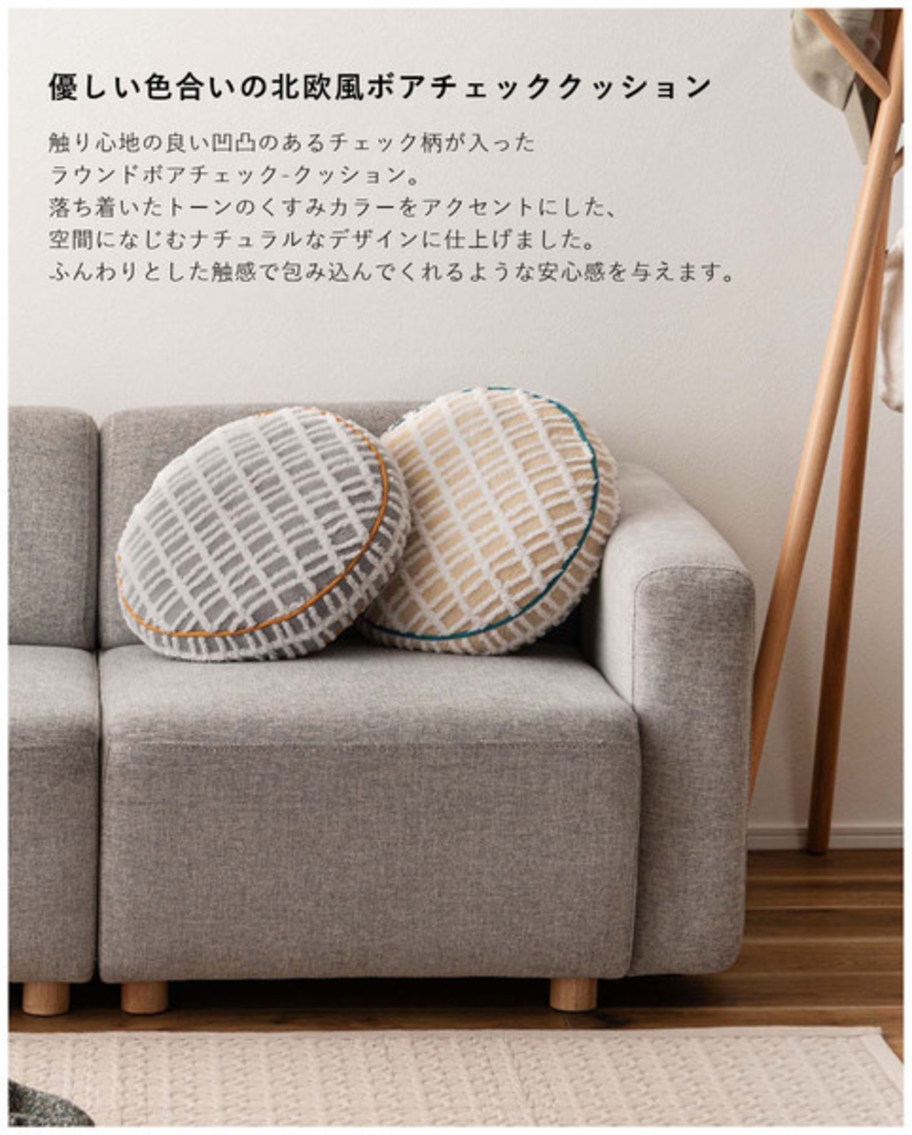 クッション チェック柄 もこもこ ふんわり 可愛い 北欧風 くすみカラー シンプル ナチュラル もちもち ボア アイボリー