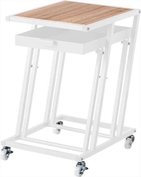 サイドテーブル キャスター付きサイドテーブル テーブル ミニテーブル 机 デスクワゴン ワゴン リビング キッチン ベッドサイド スチール キャスター付き キャスター ストッパー付き 引き出し 収納 コンパクト 低め おしゃれ スマート 木目調 ホワイト