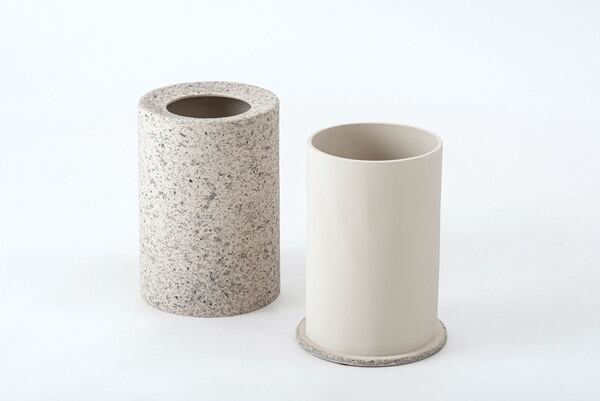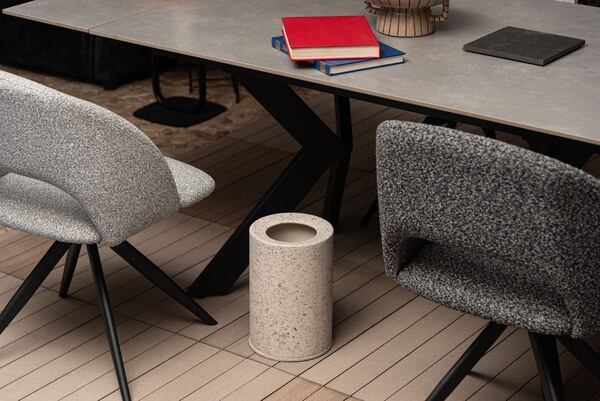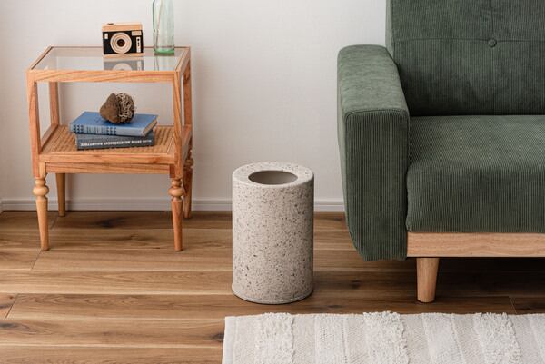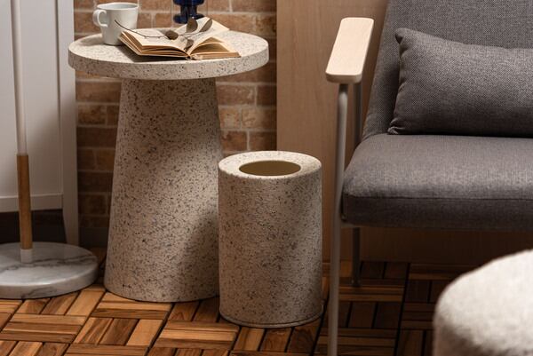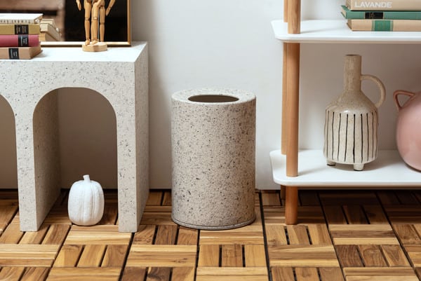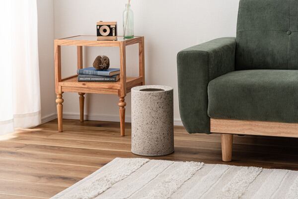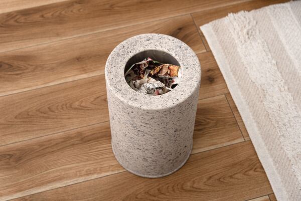 ●ざらりとした凹凸が特徴的な、美しいテラゾー柄のトラッシュカン。