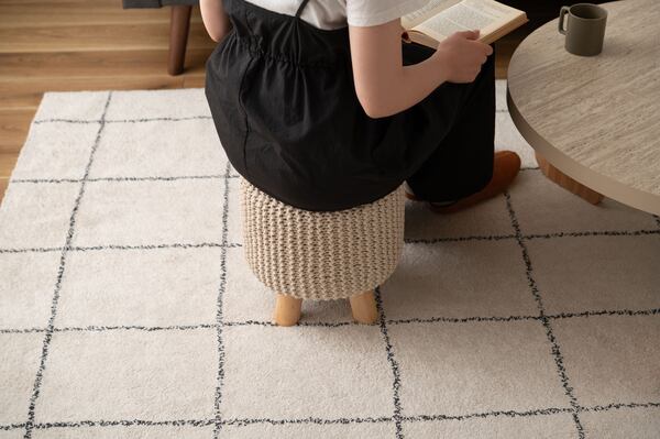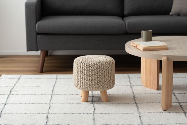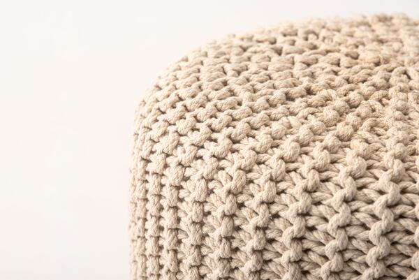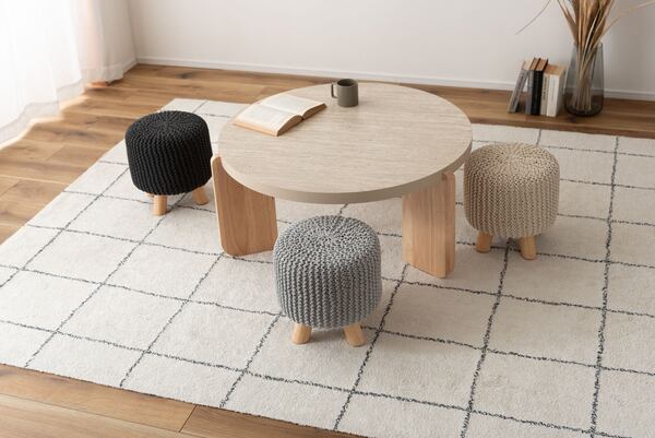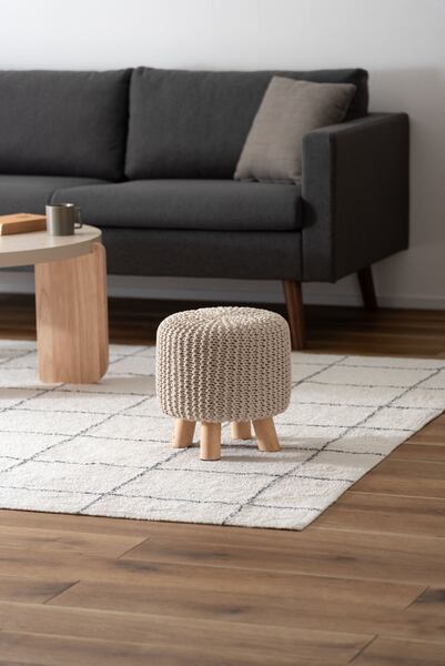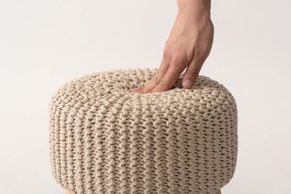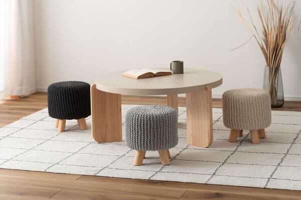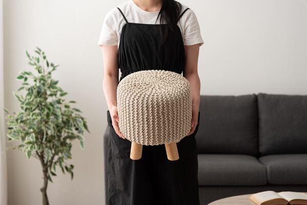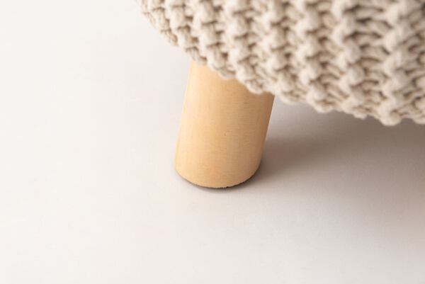 ざっくりとしたニット風デザインと、天然木の組み合わせが魅力的なスツール。