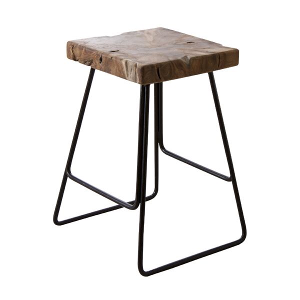 スツール チーク 無垢材 天然木 アイアン サイドテーブル 幅35cm 奥行33cm 高さ47cm リビング コンパクト 椅子 おしゃれ ナチュラル TTF-903C 東谷