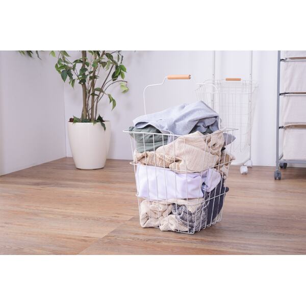 バスケットワゴン 2段 ランドリーバスケット 洗濯かご キャスター付 ワイヤーバスケット ランドリーワゴン スリム LFS-881 東谷 Room Essence