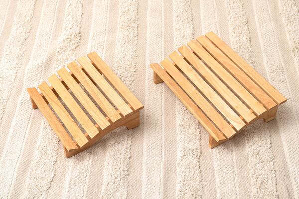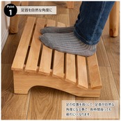 ●天然木(ラバーウッド)を使用したフットレスト(足置き)。●かかとがフィットするように設計されているので、足の位置を高くして足首を自然な角度にすることで、疲れにくくなると言われています。●「デスクワーク」「リモートワーク」などの長時間の使用におすすめ。●足の位置を高くして、足首が自然な角度になる事で、長時間座っても疲れにくくなります。●天然木を使用しているので、素足で使っても気持ちよく使えます。●完成品なので面倒な組立作業がなく、届いてすぐに使えます。●天然木のあたたかみと優しさを感じられるラバーウッドを使用。●脚裏にはゴム製の滑り止め付き。