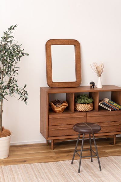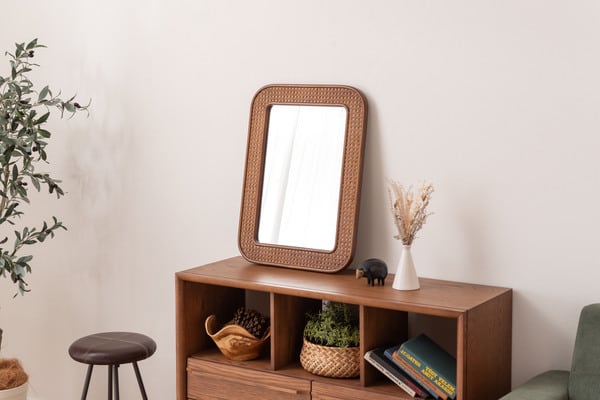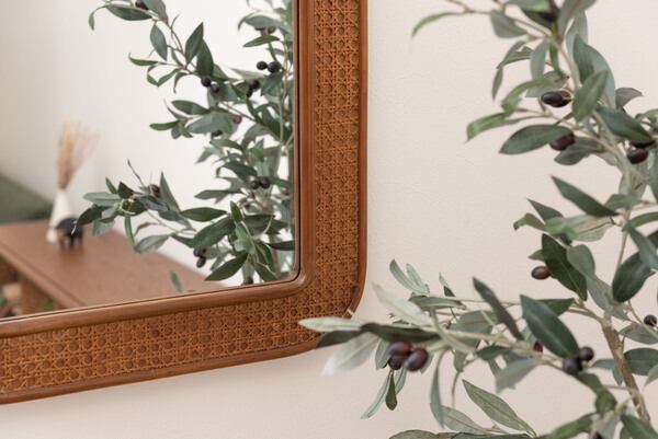 ●フレームは、天然ラタンと天然木で縁取り。自然素材のぬくもりを感じるデザイン。