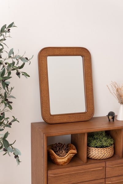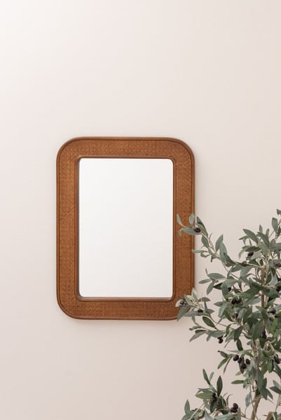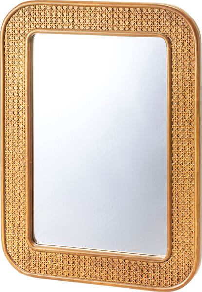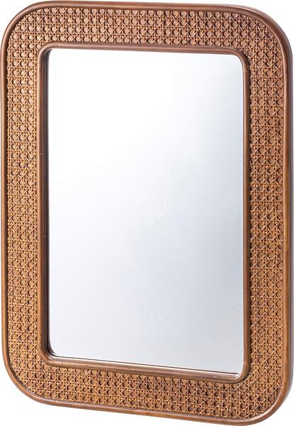 ●カゴメ編みのラタンで縁取られたミラー。