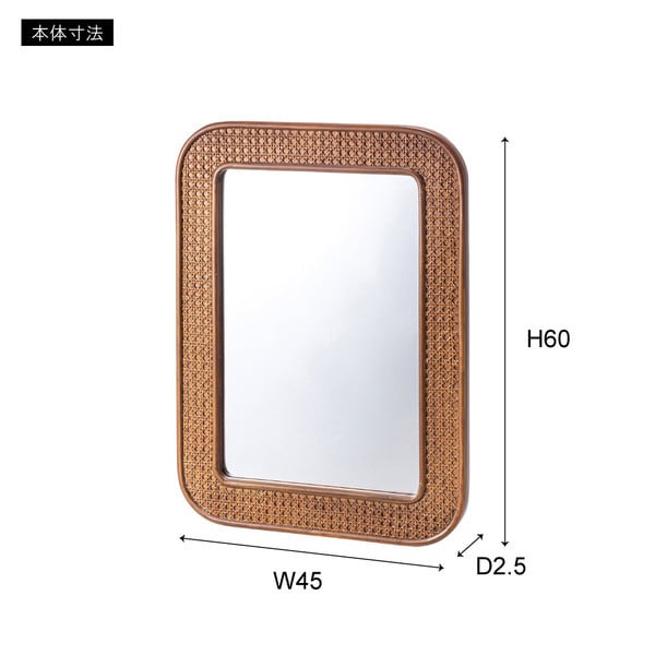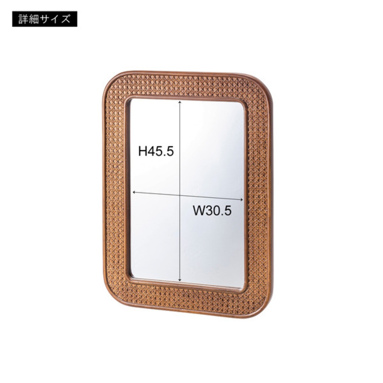 【商品仕様】天然木(ミンディ) ラタン ラッカー塗装 3mm飛散防止ミラー