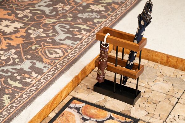 ●温かみのあるチーク材とスタイリッシュなアイアンを組み合わせたアンブレラスタンド。